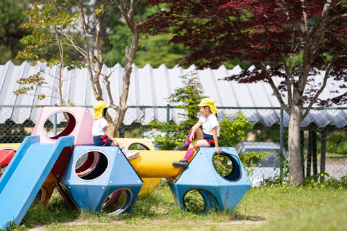高山短期大学附属幼稚園は、自然溢れる広大な園内が魅力の幼稚園です。敷地面積は高山市内の幼稚園・保育園の中で一番の広さを誇ります。定番の遊具だけでなく、アスレチックや大きなすべり台など本園ならではの遊び場が魅力のひとつです。