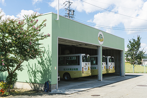 登園・降園の際には3台のバスが高山市内を6コースに分かれて送迎しています。すべてのバスに保育者が添乗し、運行中も子ども達の安全確保に対応します。